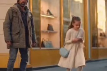 The evening city lights reflected softly off the wet pavement as people hurried past the elegant storefronts
