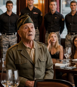 The restaurant was filled with the soft hum of conversations, clinking glasses, and laughter from families enjoying a night out. At one corner table, however, sat an old man in a faded military uniform. His jacket was worn, his medals slightly tarnished, yet his posture carried the dignity of a man who had once stood unshaken on the battlefield.