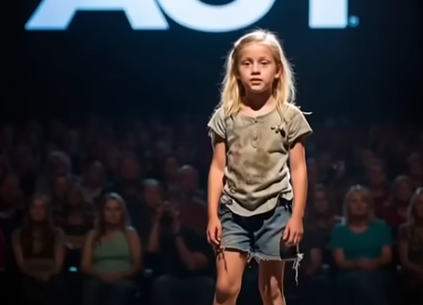 The audience murmured. Some looked at her with sympathy, others with doubt. What could a little girl, dressed in such simple clothes, possibly do on one of the biggest stages in the world?