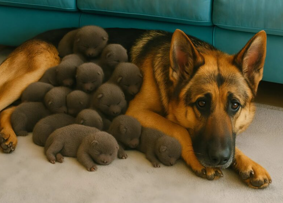 The puppies were strange: too large for newborns, with elongated muzzles and eyes yellow like amber. Their cry did not sound like a puppy squeak — more like a quiet, hoarse howl.