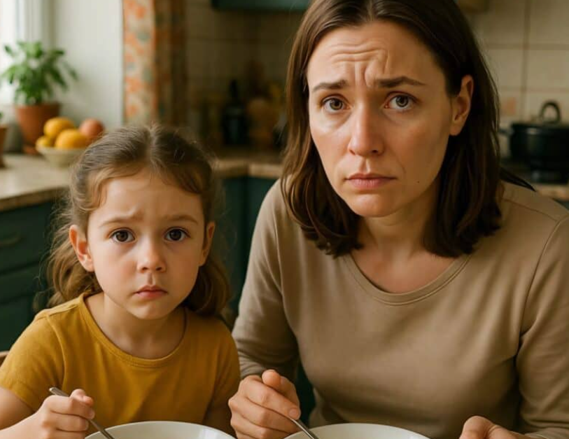 Everything was completely ordinary. I poured the soup, put the plates on the table, sat down across from her — and at that moment her face changed. The smile disappeared, her eyes widened, and her voice became sharp, unusually grown-up: