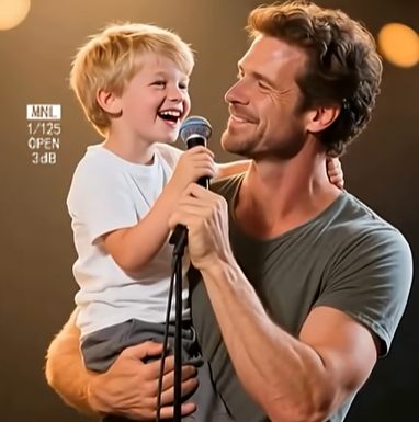 The man looked at him with a soft smile, adjusting the microphone closer to the boy’s mouth.